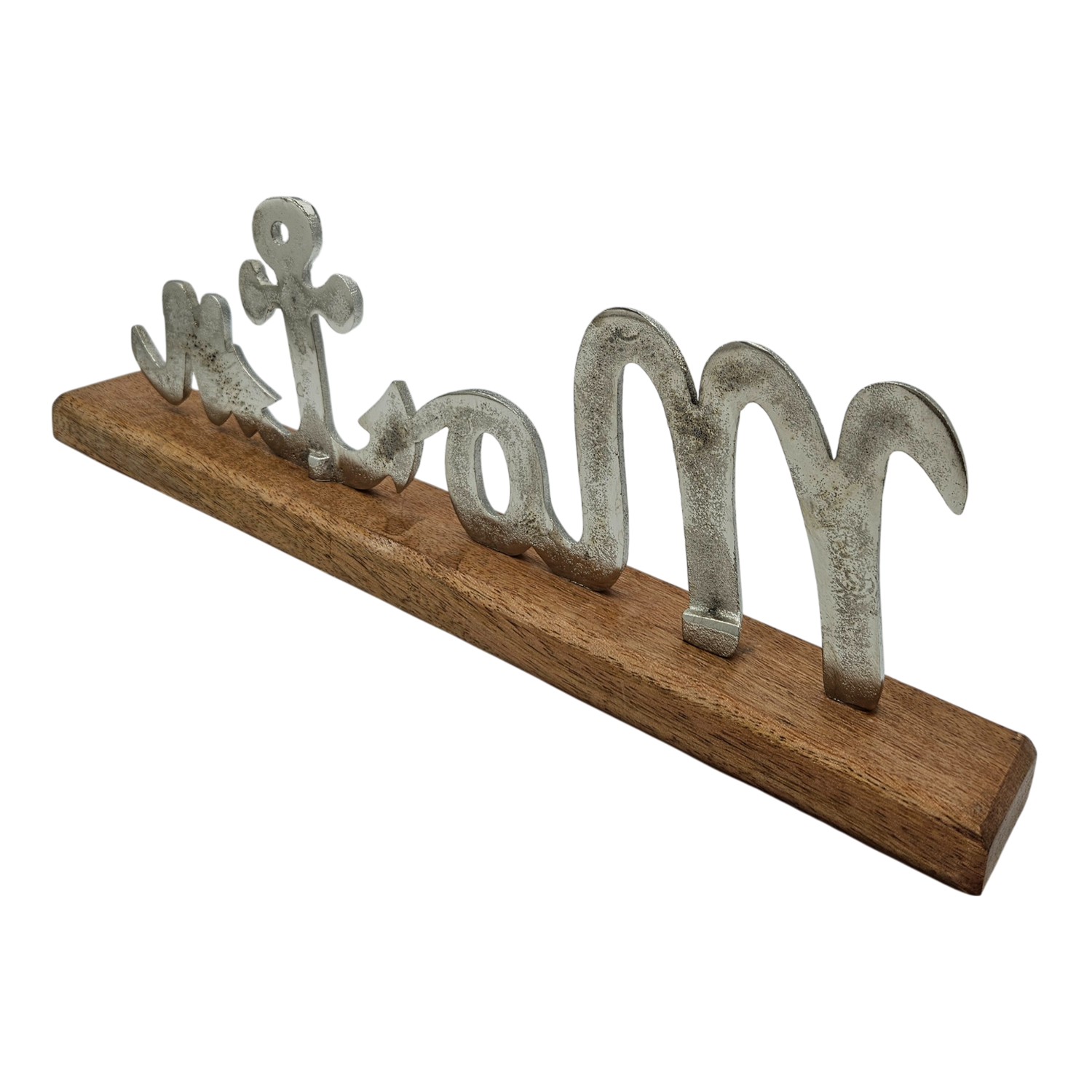 Schild Aufsteller MOIN Metall Mangoholz Maritim Dekoschild Schriftzug 40x10 cm