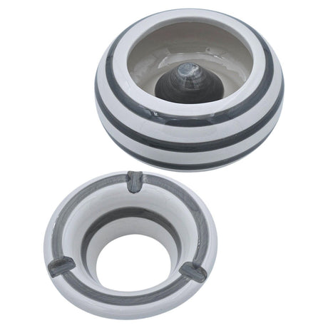 Sturmaschenbecher Mykonos M / XXL 23 cm Maritim grau weiß Aschenbecher gestreift