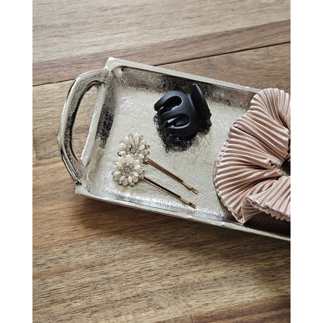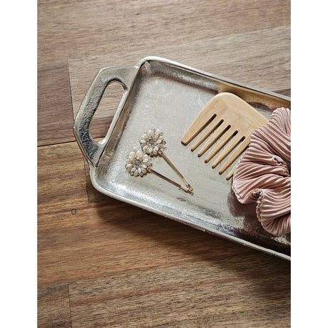 Tablett Dekotablett Dekoschale silber Metall Deko Kerzentablett Kleines Tablett, 47 x 19 cm)