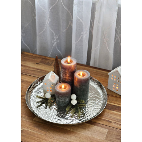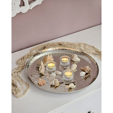 Teller Dekoteller Silber Metall rund Hammerschlag Kerzenteller Schale Ø 33 cm