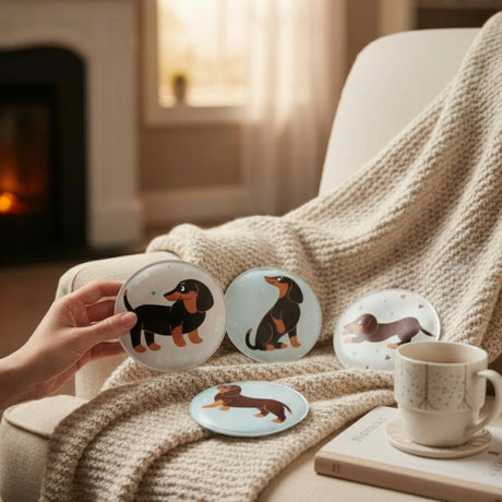 Taschenwärmer Handwärmer Hund Dackel 4er Set wiederverwendbar Wärmekissen