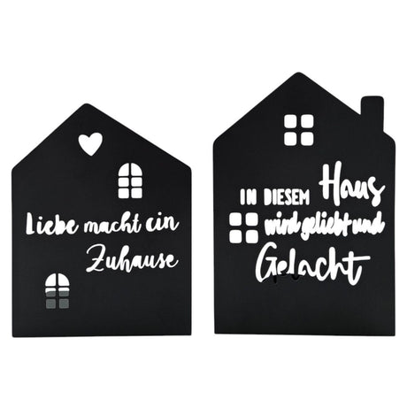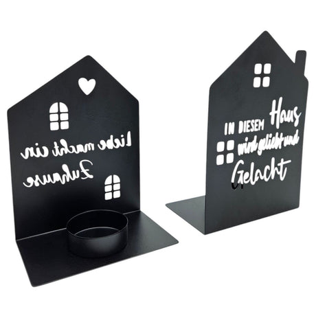 Teelichthalter Haus schwarz 2er Set Kerzenhalter Metall Zuhause Sprüche