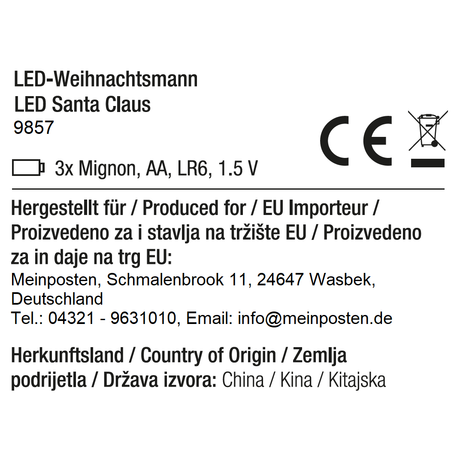 Weihnachtsmann LED Schal & Mütze Beleuchtung warmweiß Höhe 25 cm