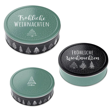 Gebäckdose Metall rund 3er Set Winter Vorrat Stern Fröhliche Weihnachten Plätzen