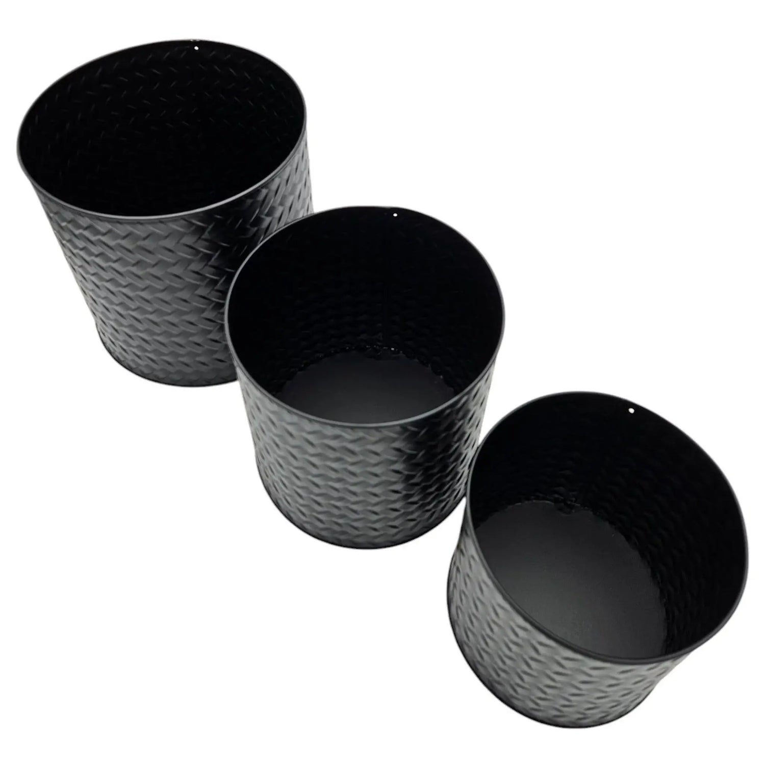 3er Set Pflanzenkübel rund Mattschwarz und Flechtoptik in 3 verschiedene Größen