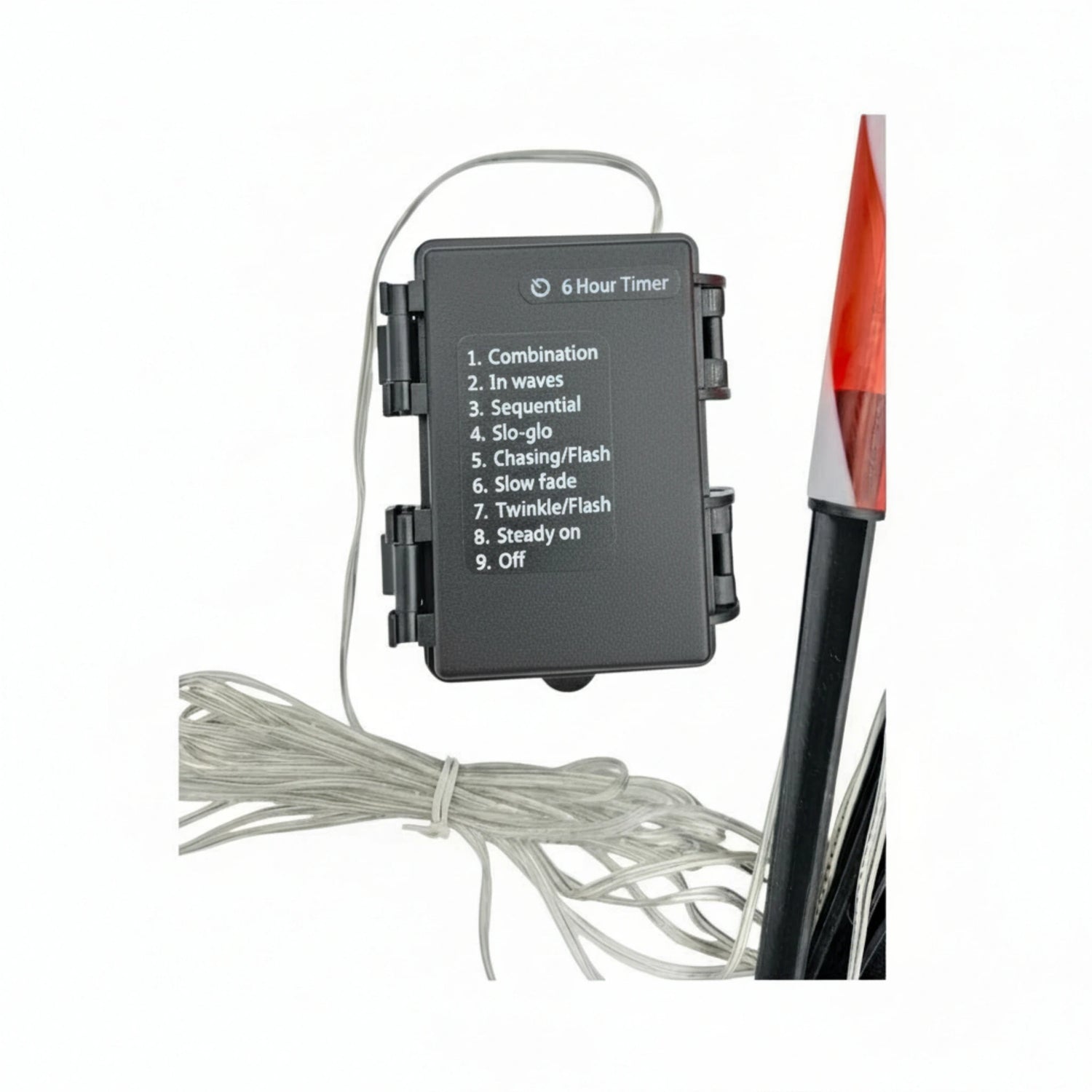 Der Gartenstecker ist spritzwassergeschützt nach IP44 und somit bestens für den Einsatz im Garten, Vorgarten oder auf dem Balkon geeignet. Der integrierte 6-Stunden-Timer nimmt Ihnen das tägliche Ein- und Ausschalten ab – für sorgenfreie Festtage bei jeder Witterung.