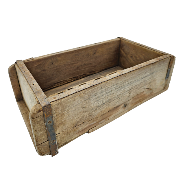 Unser Ziegelkasten erzählt eine echte Geschichte: Ursprünglich aus recyceltem Holz in Indien gefertigt, diente er einst als Form zur Herstellung von Ziegelsteinen. Heute bringt er Authentizität und nachhaltigen Charme in Ihr Zuhause – jeder Kasten ein charakterstarkes Unikat.