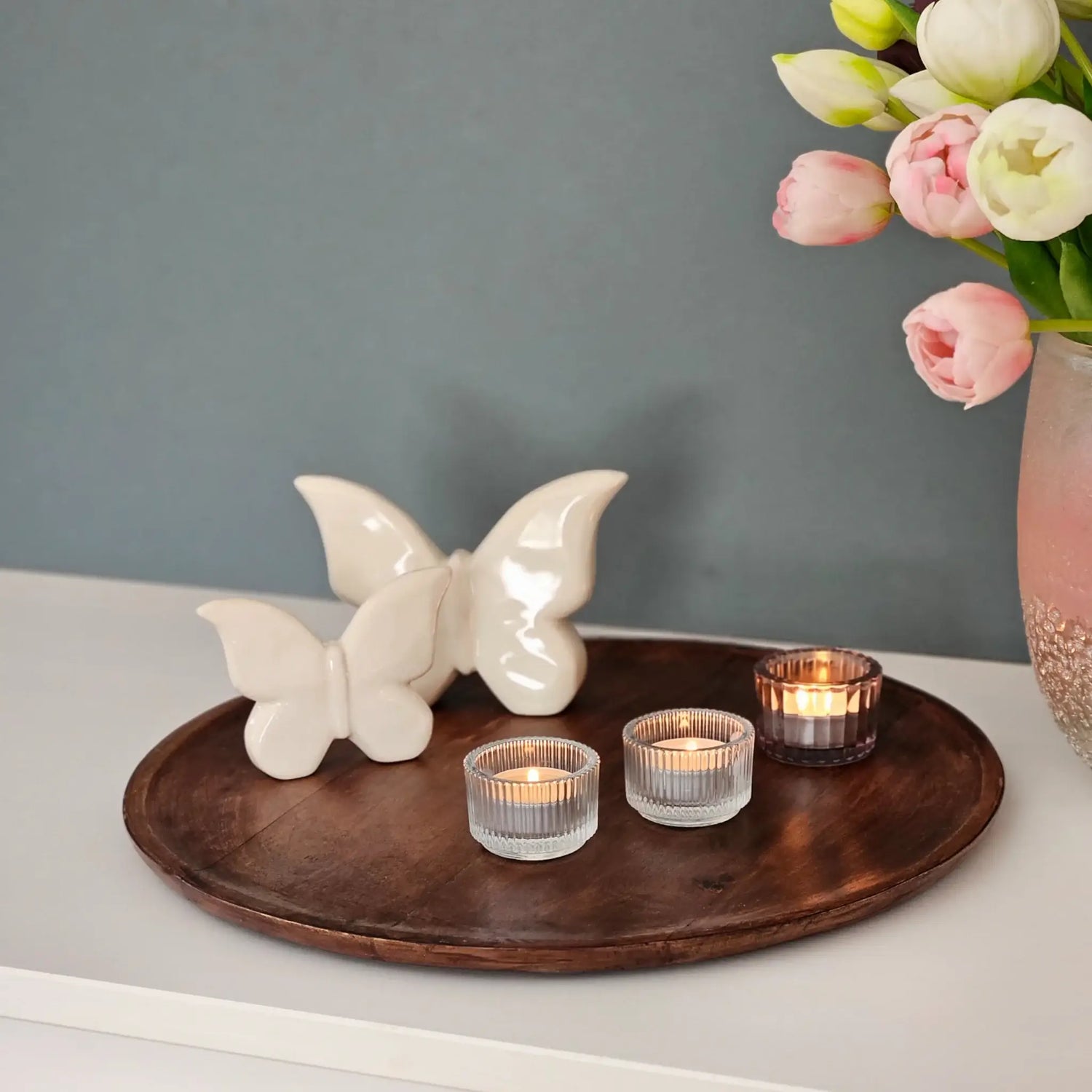 Nutzen Sie den Holzteller nicht nur als Basis für Kerzen, Vasen oder Trockenblumenarrangements, sondern auch als puristisches Highlight im Raum. Er unterstreicht den Charakter Ihrer Einrichtung – von modern bis rustikal.