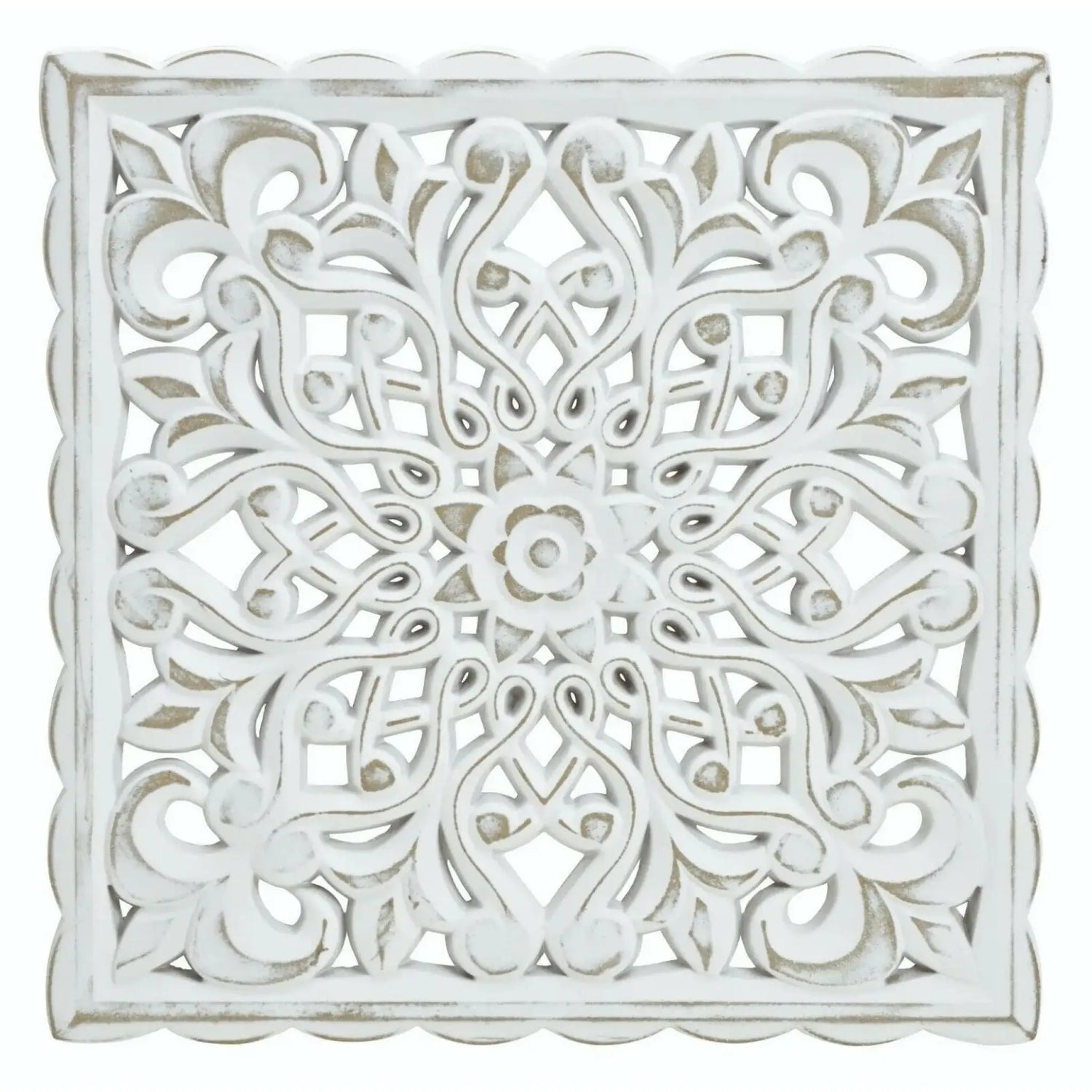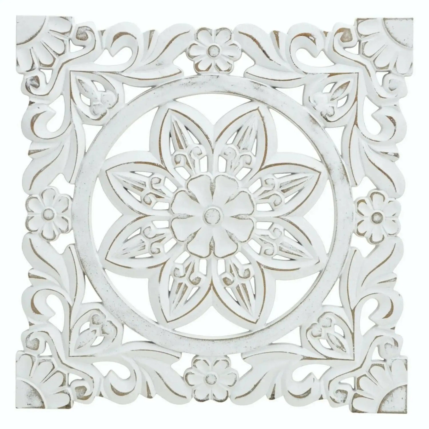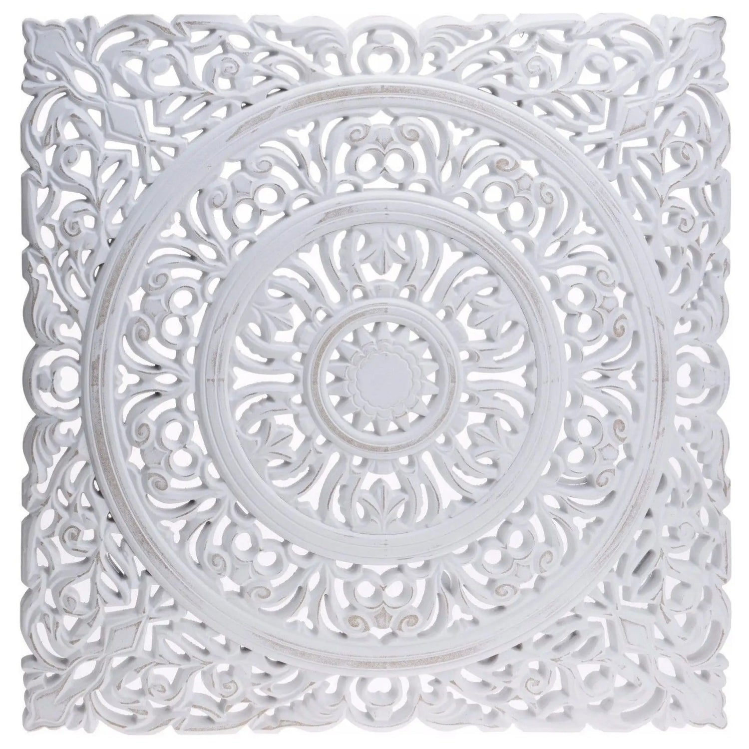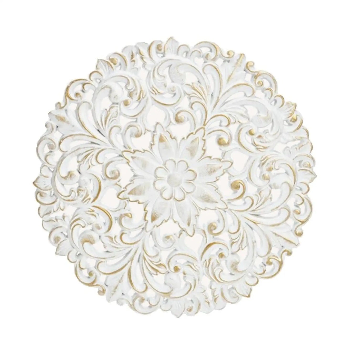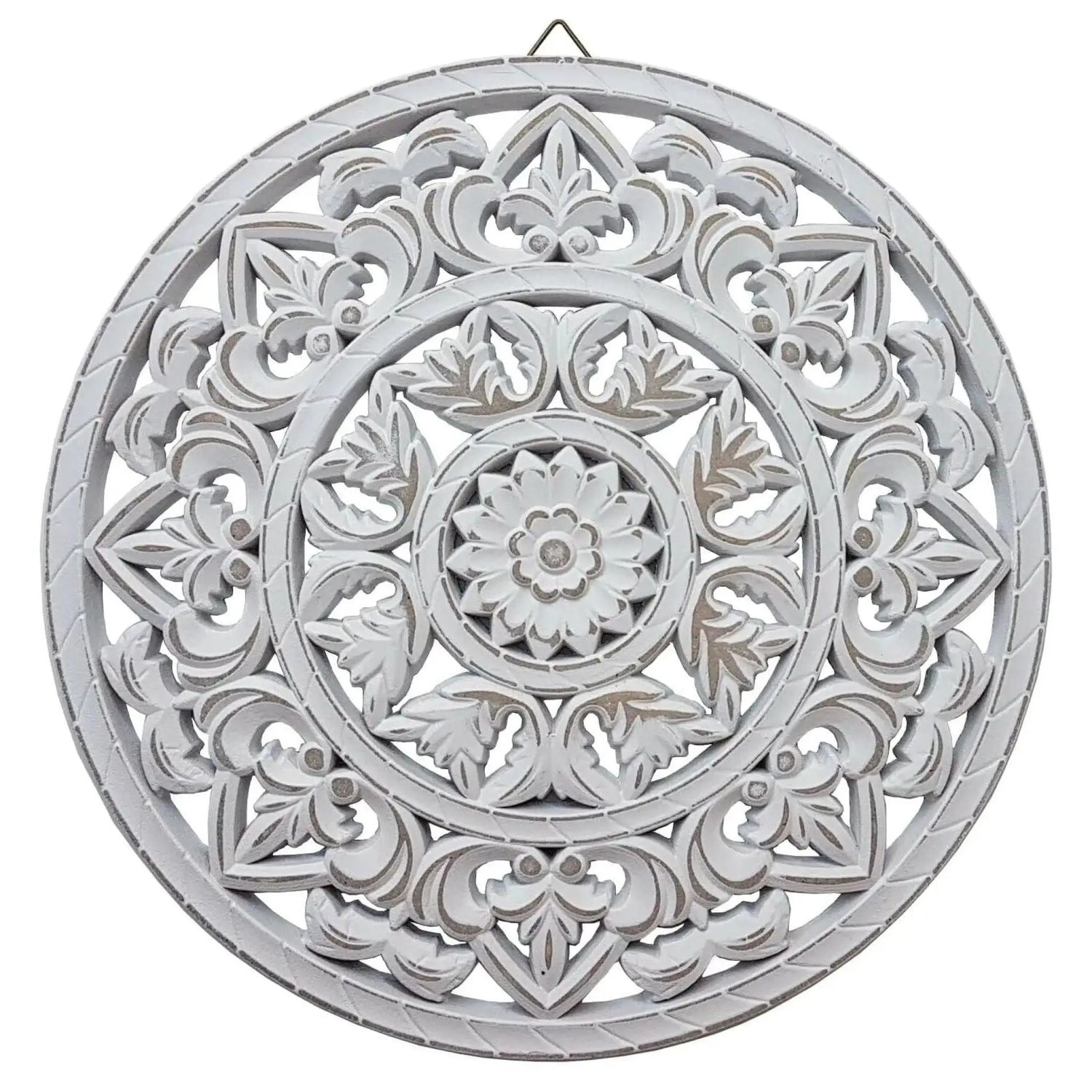 Ornament Holzbild Wandornament Holz shabby weiß Landhaus Dekoration Mandala Deko
