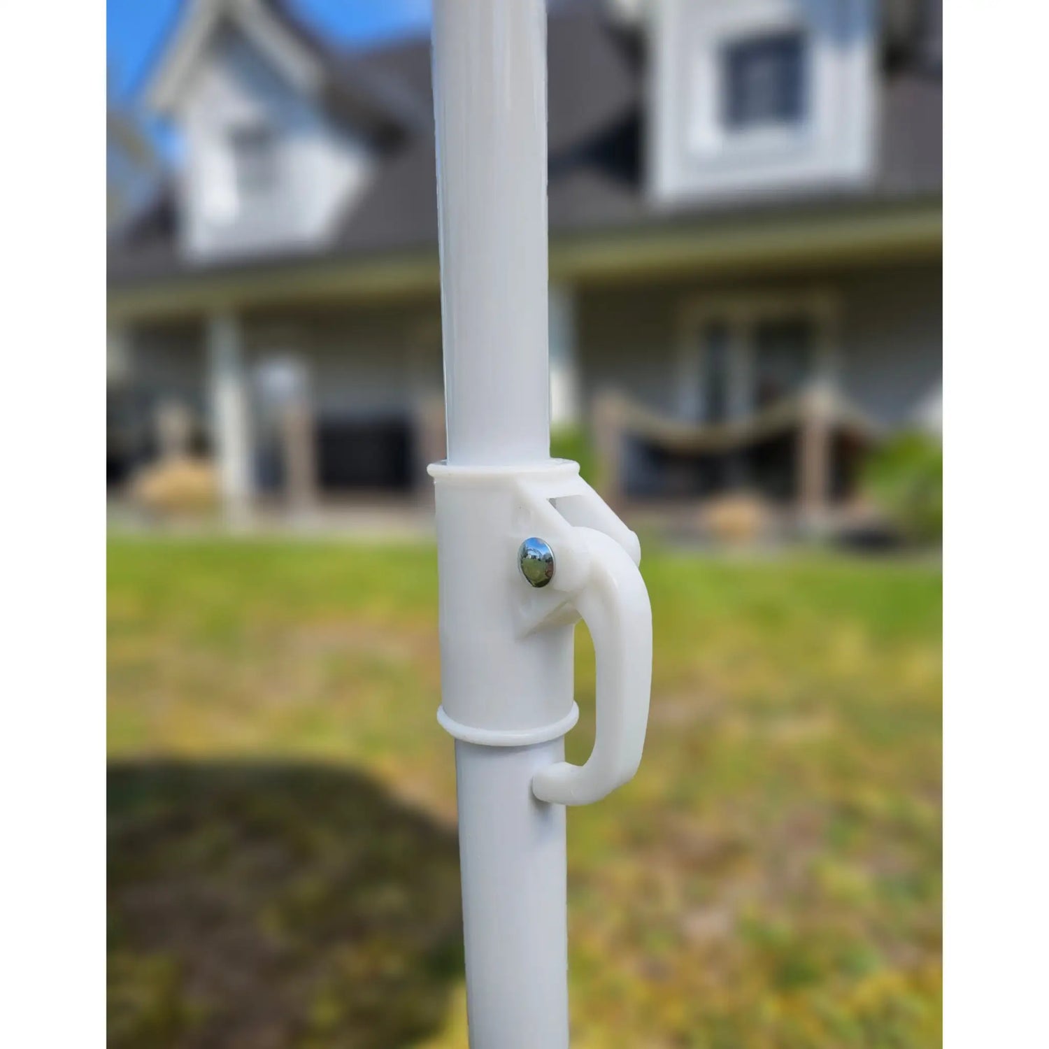 - Maße: Mit einem Durchmesser von ca. 155 cm und einer Höhe von ca. 180 cm bietet er ausreichend Abdeckung und passt sich dank des Rohrdurchmessers von 22 mm vielen Standard-Sonnenschirmständern an.