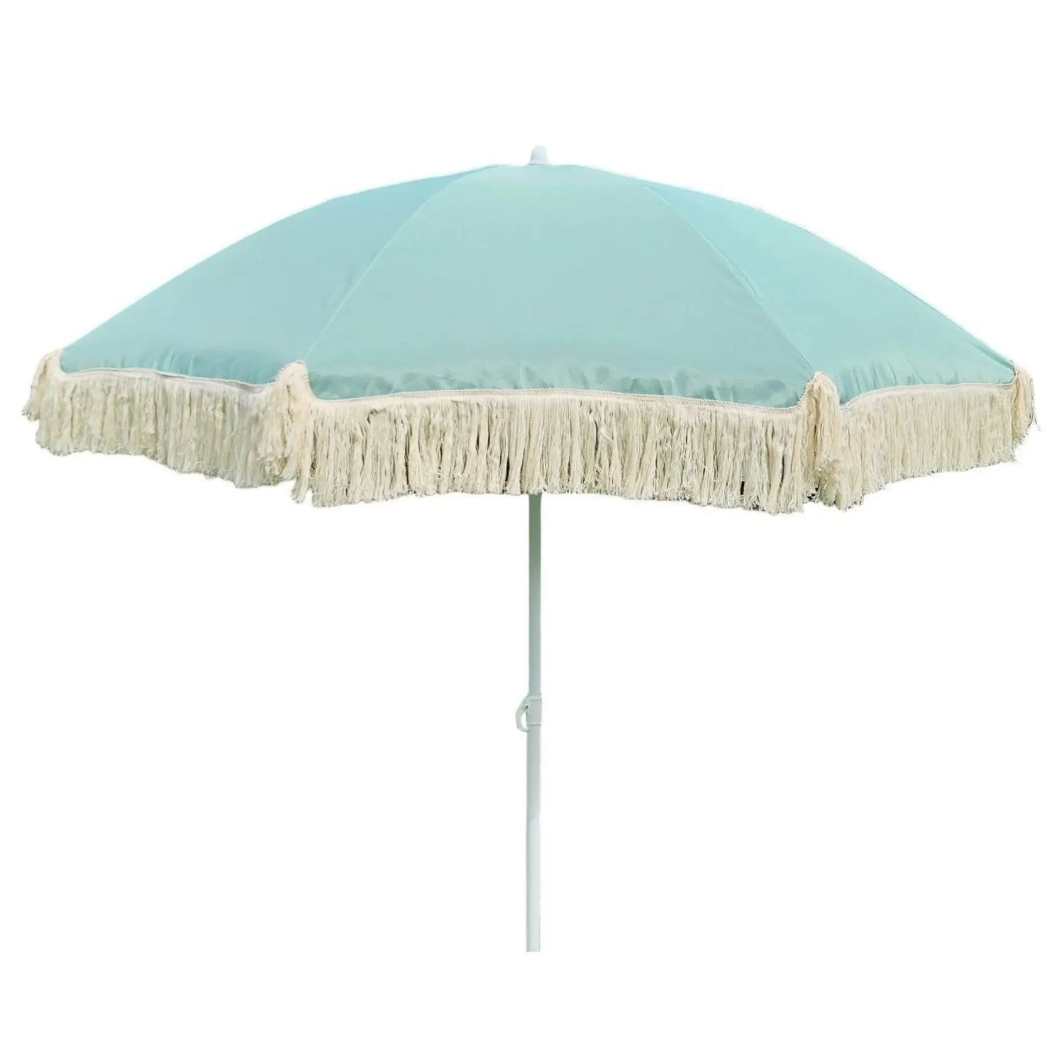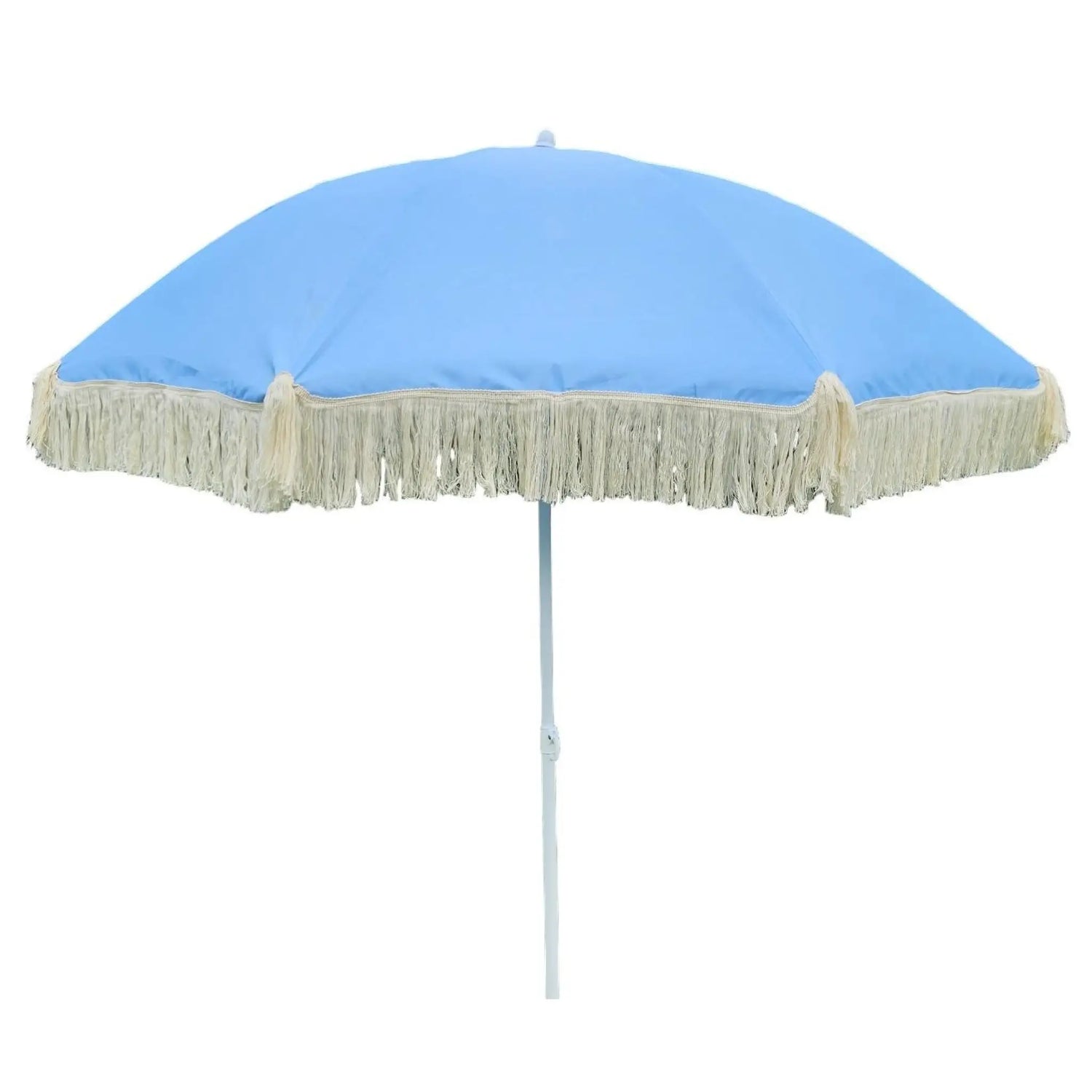 Schöner runder Sonnenschirm mit UV-Schutz 30+ und Fransen. Ideal für den Strand, im Garten und auf dem Balkon.