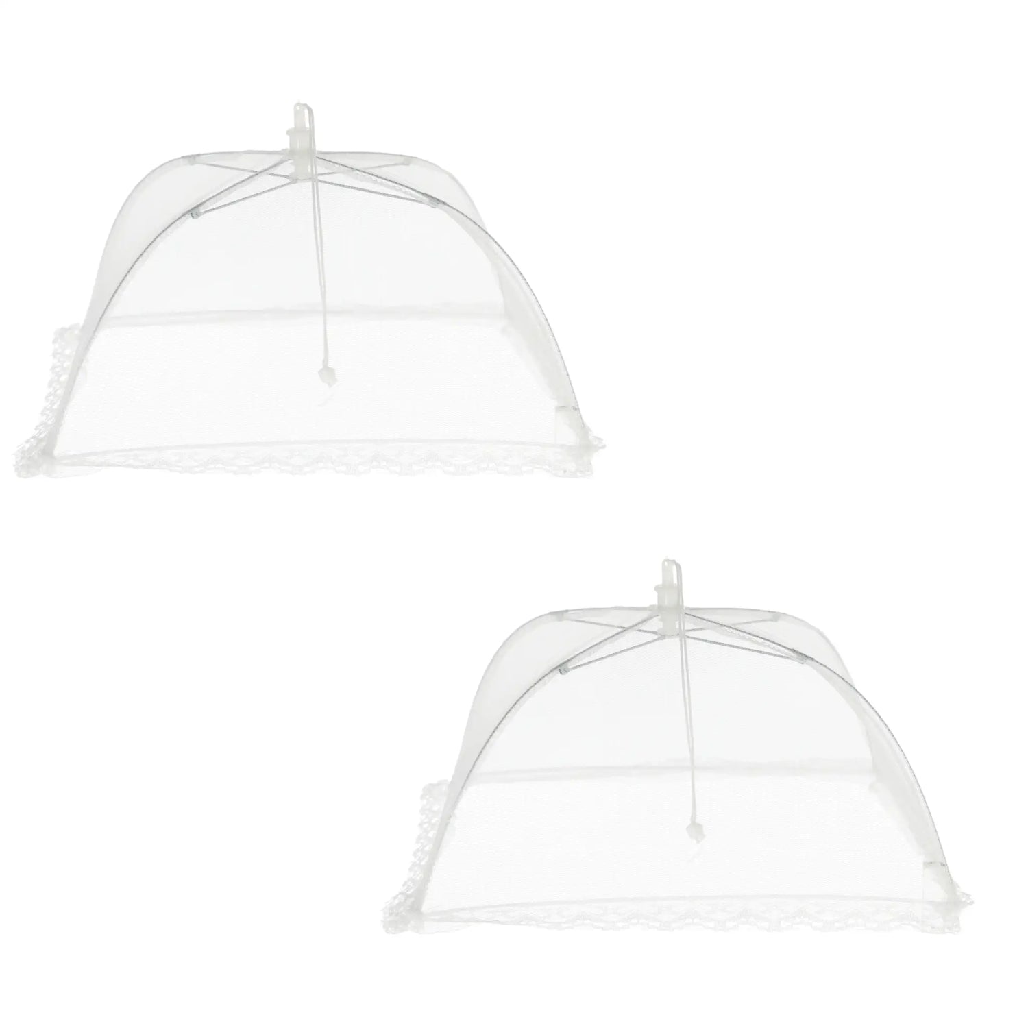 Schützen Sie Ihre Lebensmittel mit diesem praktischen 2er Set aus weißer Speisehaube. Die zusammenfaltbaren Hauben sind 34x34 cm groß und 20 cm hoch und bieten einen idealen Schutz gegen Fliegen und Wespen. Genießen Sie ungestört Ihr Essen im Freien.