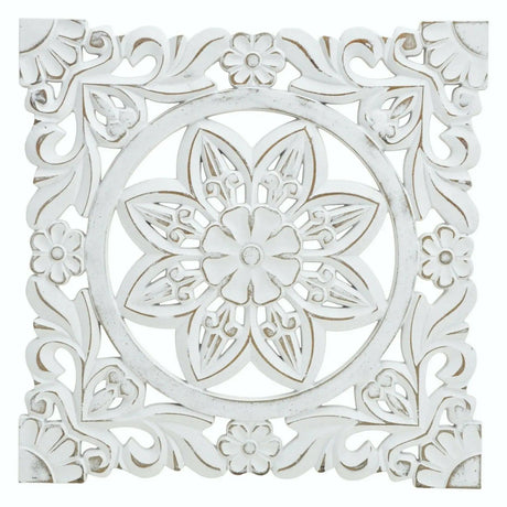 Wandornament Holz weiß 55x55 cm shabby Landhaus Ornament Holzornament Holzbild