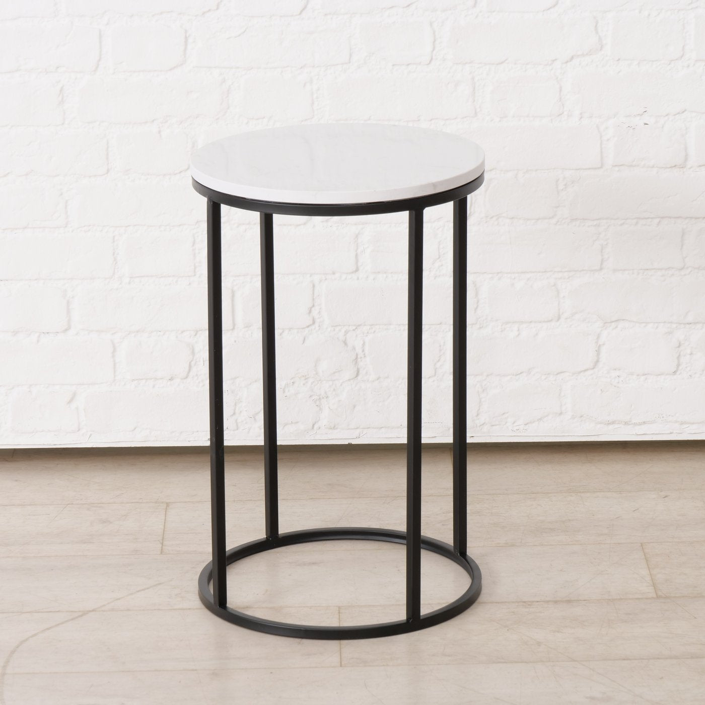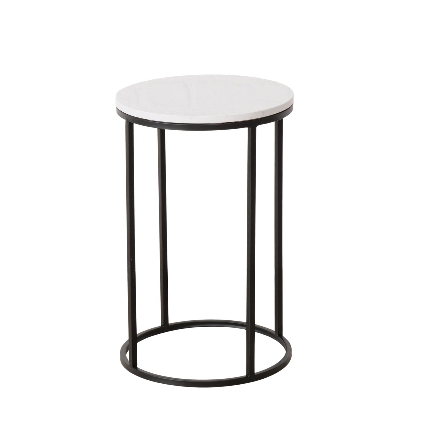 Beistelltisch schwarz mit weißer Marmorplatte Steinplatte Marmor Couchtisch rund 55 cm