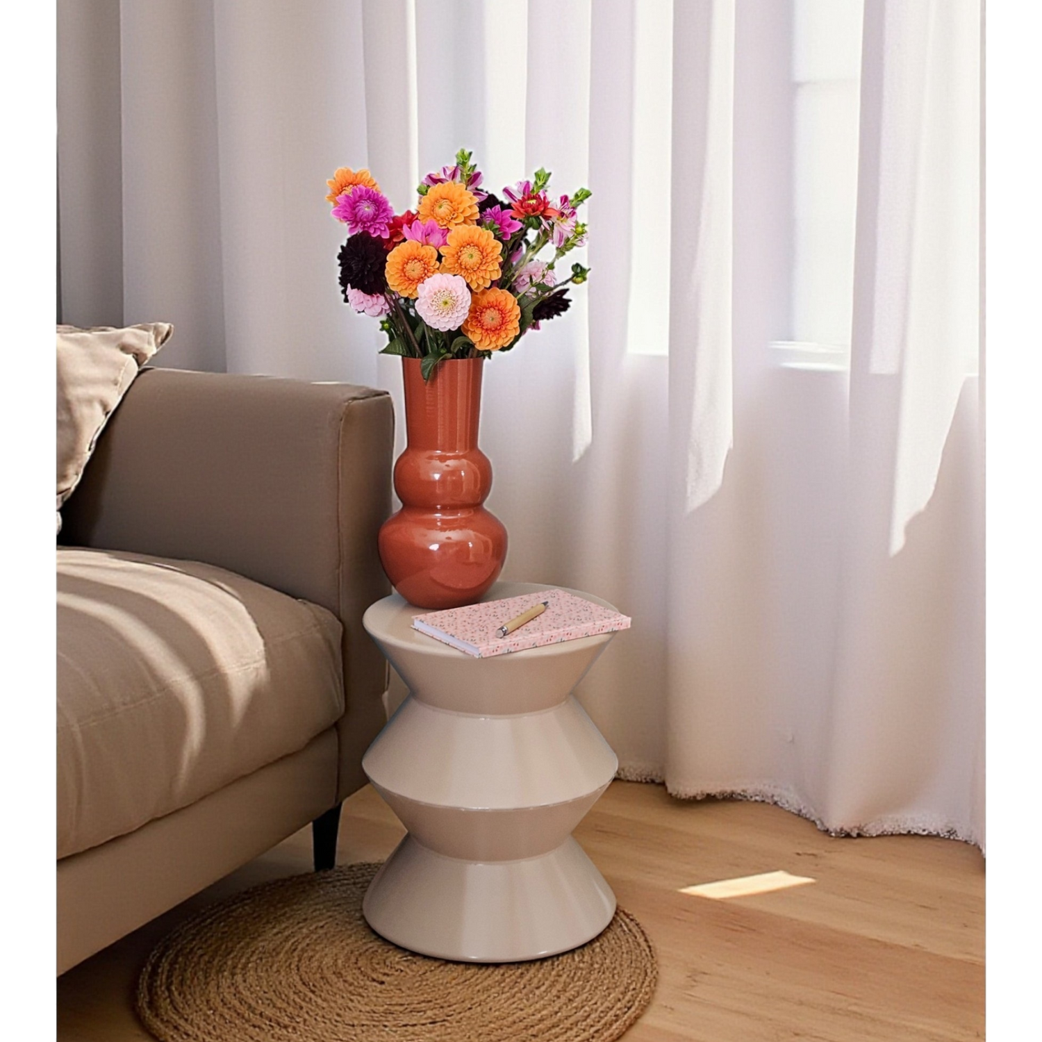 Couchtisch Beistelltisch beige 37x30 Retro Metalltisch rund kleiner Tisch Pflanztisch