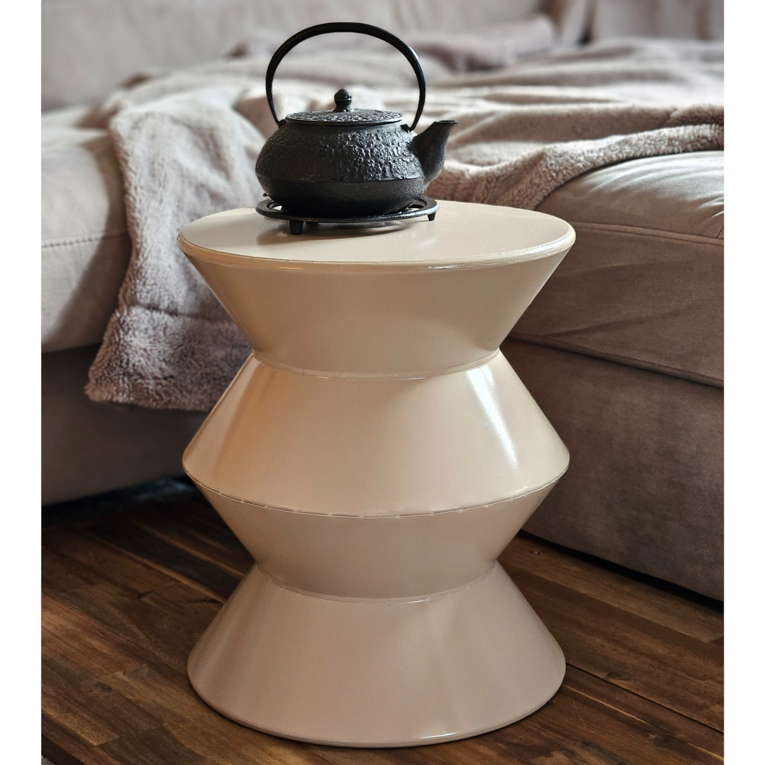 Mit seiner kompakten Größe (Durchmesser ca. 37 cm, Höhe ca. 30 cm) ist der Beistelltisch die perfekte Ergänzung zu Ihrem Sofa, Bett oder Lieblingssessel. Dank seines hohlen Innenraums bietet er zusätzliche Aufbewahrungsmöglichkeiten: Einfach umdrehen, und schon können Sie Zeitschriften, Kissen oder andere Gegenstände dezent verstauen.