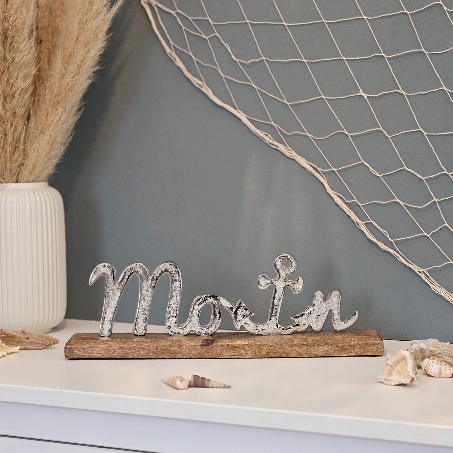 Schild Aufsteller MOIN Metall Mangoholz Maritim Dekoschild Schriftzug 40x10 cm