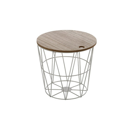 Kleiner Beistelltisch Aufbewahrungskorb mini Tisch Korb mit Deckel rund weiß