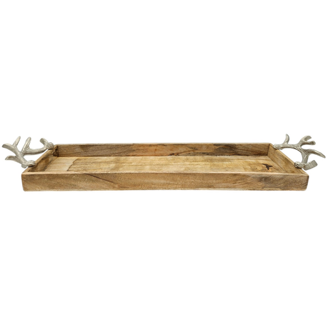 Metalltablett Tablett Serviertablett lang 59 cm Dekotablett silber mit Henkel