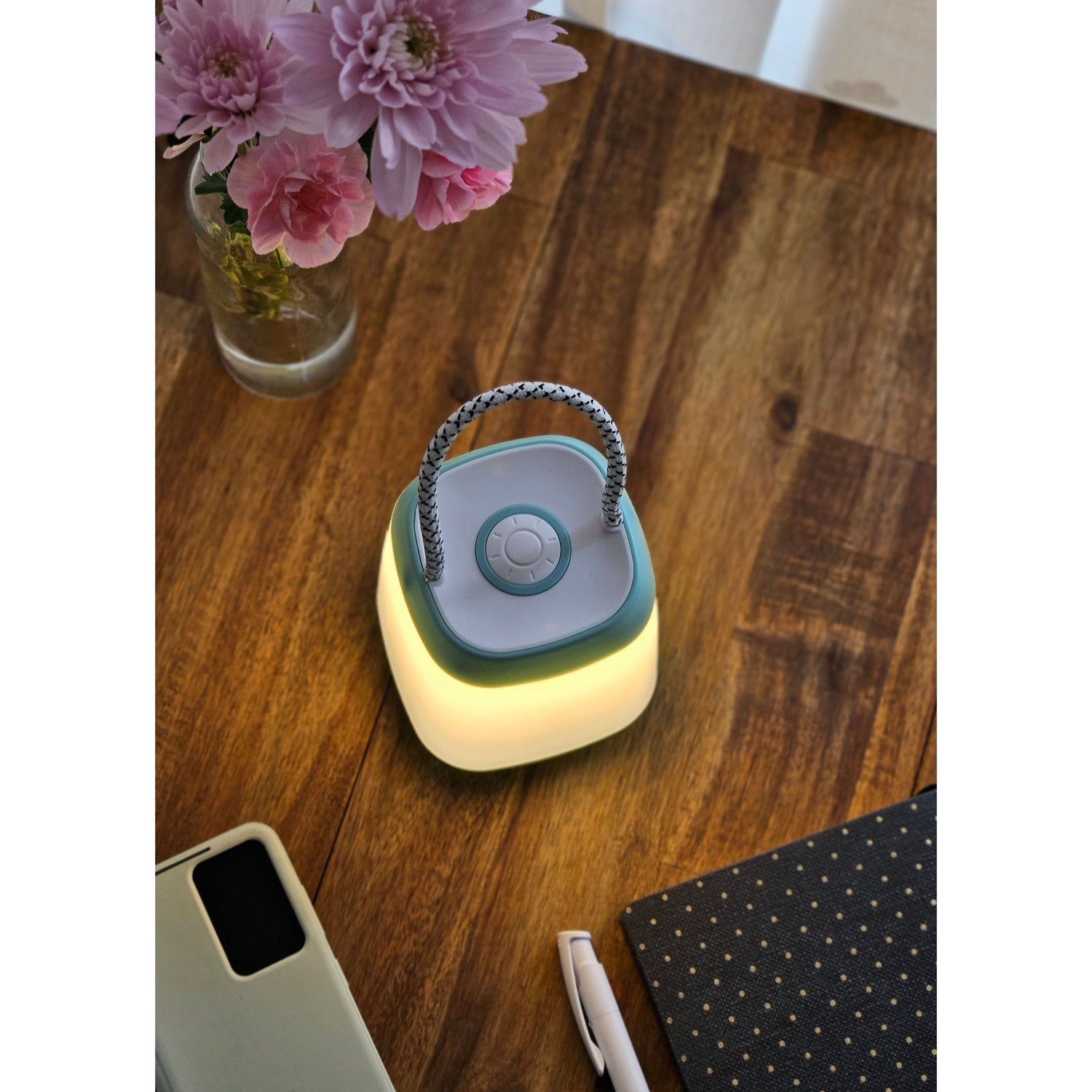 Transportable Tischleuchte mit warmweißen und dimmbaren LEDs.