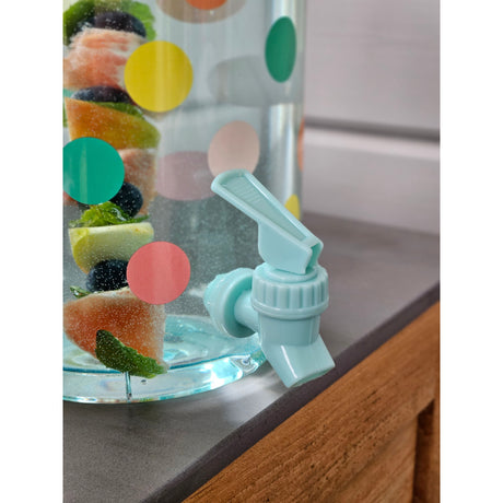 Saftspender Getränkespender mit Zapfhahn 3,75 Liter Kunststoff Wasserspender bunte Punkte TÜRKIS