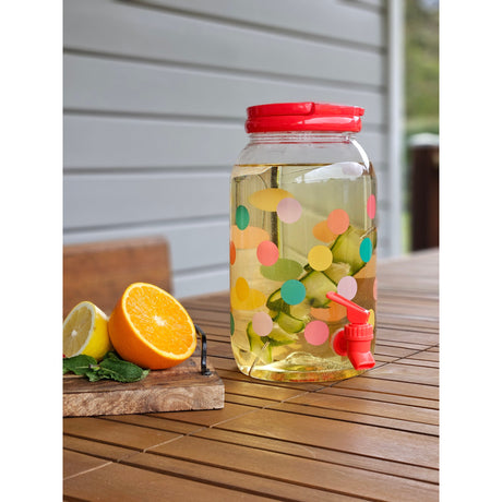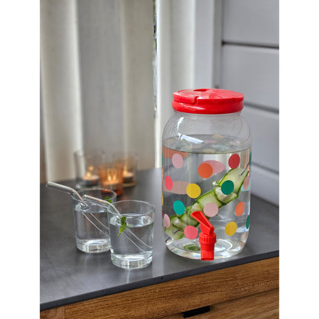 Saftspender Getränkespender mit Zapfhahn 3,75 Liter Kunststoff Wasserspender bunte Punkte ROT