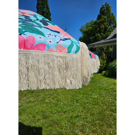 Sonnenschirm Strandschirm Schirm UV Schutz mit Tasche Fransen Blumen Ø 155 cm