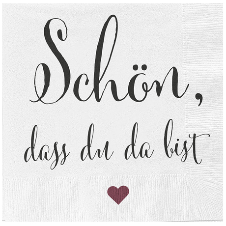 Servietten Schön dass du da bist 80 Stück Spruch Feier Fest Papier weiß 33x33 cm