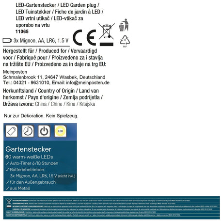 Gartenstecker Stern LED Weihnachtsbeleuchtung Batterie Timer warmweiß 60x60 cm
