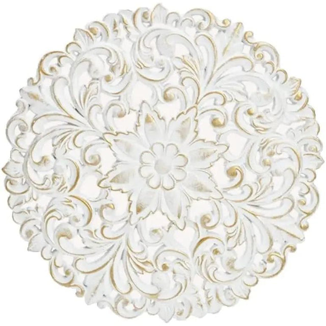 Wandbild Holzbild Ornament weiß gold 39 cm Landhaus Mandala shabby