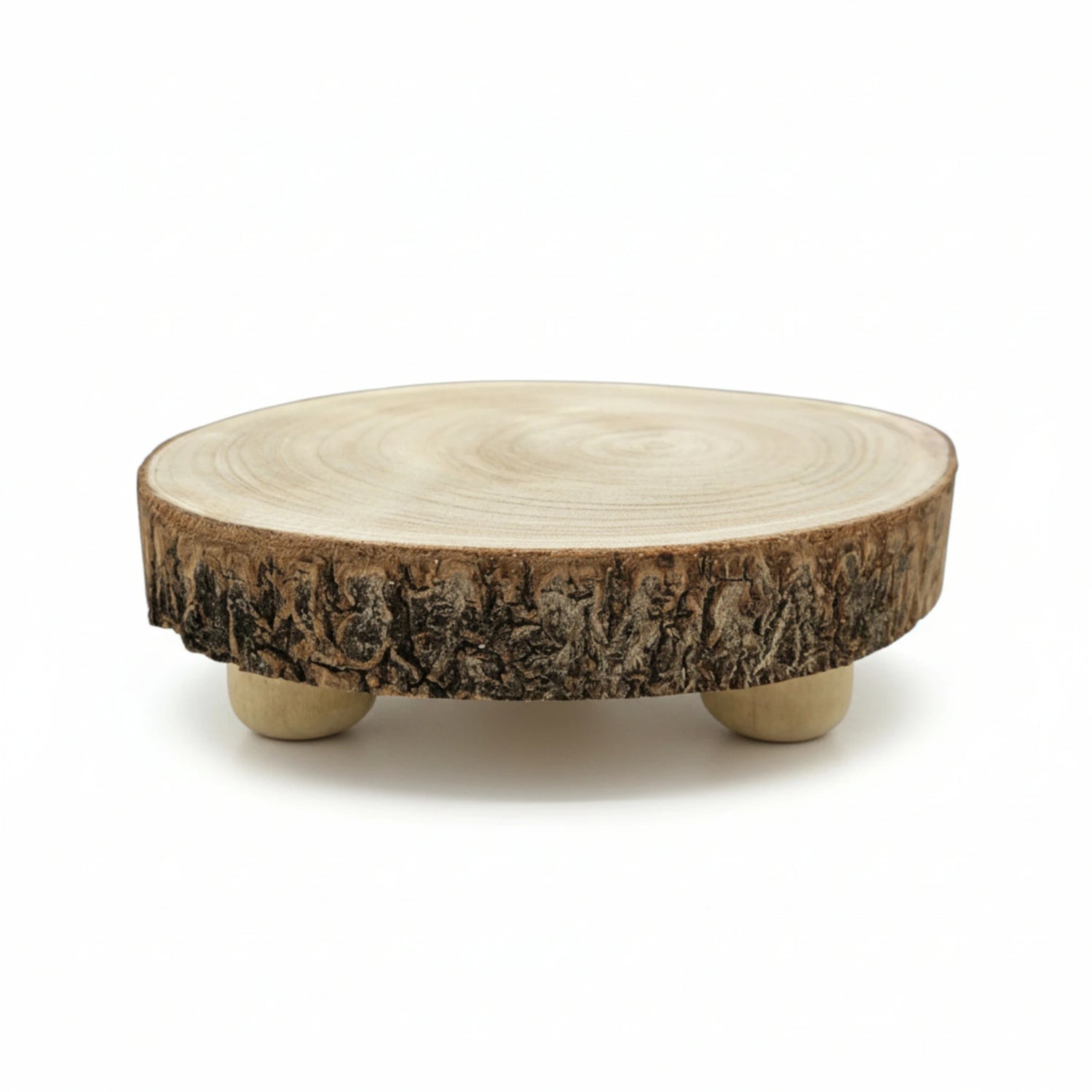 Baumscheibe rund Dekoscheibe Basteln Dekoteller auf Füßen Holzscheibe mit Rinde 17-22 cm ist auf Lager und wird versandt, sobald es wieder verfügbar ist