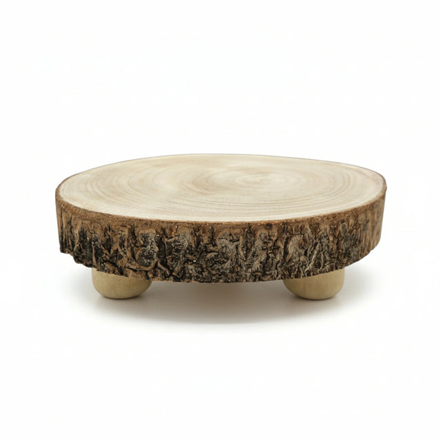 Baumscheibe rund Dekoscheibe Basteln Dekoteller auf Füßen Holzscheibe mit Rinde 17-22 cm
