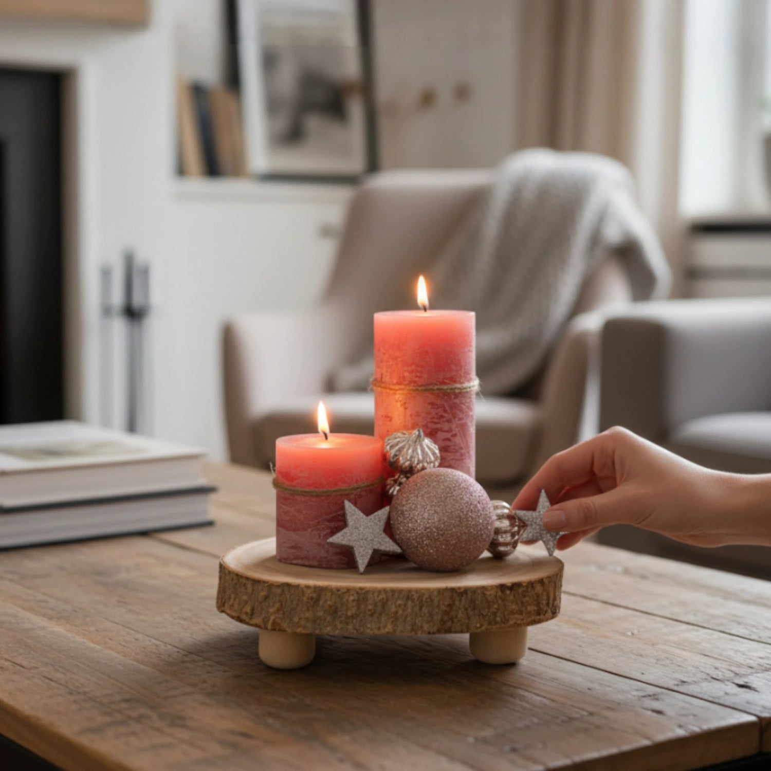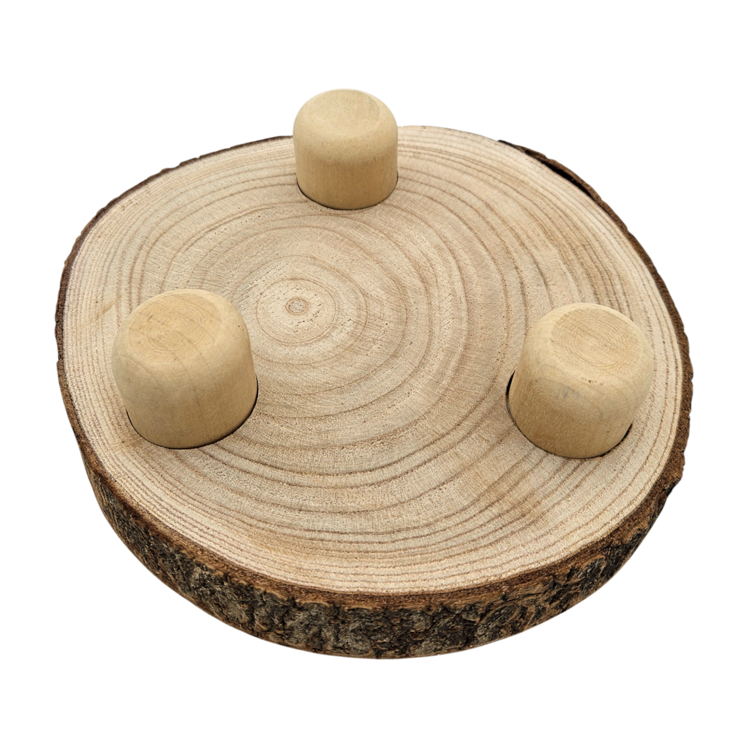 Ausgestattet mit drei kleinen Holzfüßen bietet die Baumscheibe einen sicheren Stand. Sie eignet sich perfekt als dekorativer Untersetzer auf dem Esstisch, als natürliche Basis für Kerzen, Pflanzen oder Allergiker freundliche Dekorationen. Auch als Servierplatte für besondere Anlässe sorgt sie für abwechslungsreiche Präsentationen mit Charme.