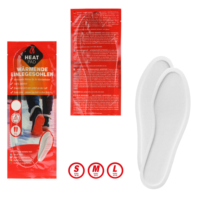 Halten Sie Ihre Füße warm und genießen Sie maximalen Komfort beim Spazieren, Wandern, Skifahren, Snowboarden oder anderen Outdoor-Aktivitäten mit diesen beheizten Einlegesohlen! Super dünne Sohlen (nur ca. 3 mm hoch). Einfach in die Schuhe legen und bis zu 8 Stunden warm halten. Keine kalten Füße mehr. Sobald Sie die Verpackung öffnen, werden die Sohlen warm. Erhältlich in 3 Größen, damit Sie genau die richtige Passform finden. Jetzt ausprobieren und das winterliche Abenteuer genießen!