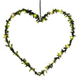 Herz oder Stern Fenster LED Silhouette Batteriebetrieben in warmweiß mit grünen Kunststoff Blättern geschmückt.