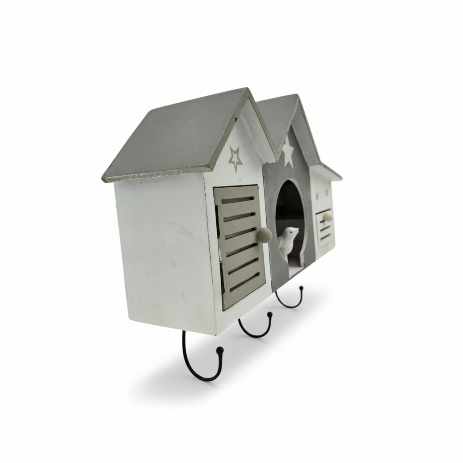 • Besonderheiten: 3 stabile Haken, kleiner Vogel in der Mitte, Tür links, Schublade rechts